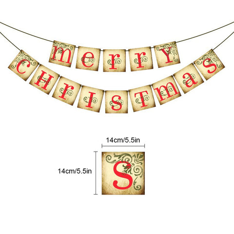 • FRÖHLICHE WEIHNACHTEN ist auf einem koordinierenden grünen Satinband aufgereiht und erstreckt sich über 54 Zoll, wenn es doppelt aufgehängt wird, und über 84 Zoll, wenn es nebeneinander aufgehängt wird.