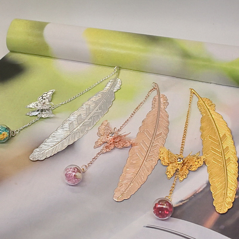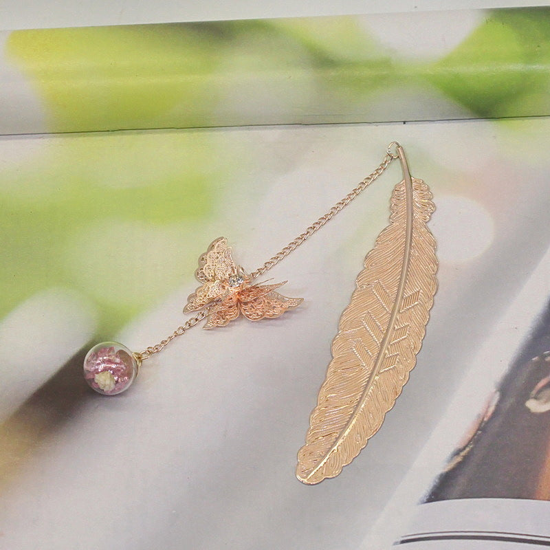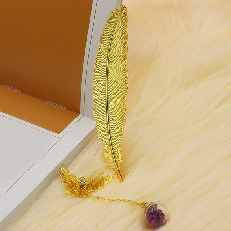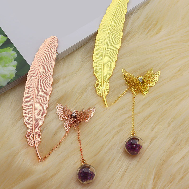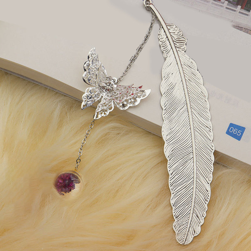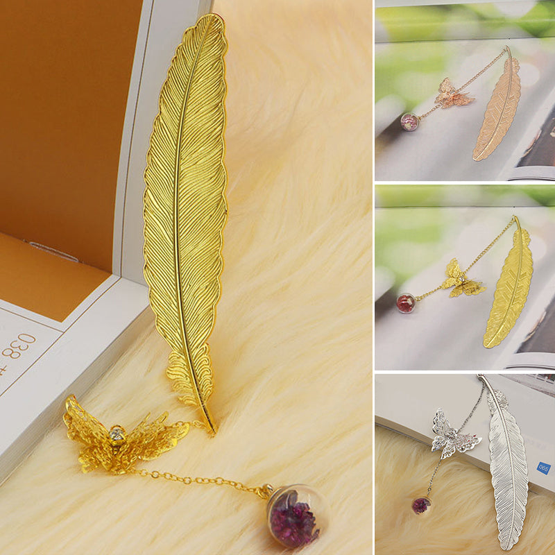 🪶Einzigartiges Design - Metallfeder-Lesezeichen im Vintage-Stil, mit einem realistischen 3D-Metall-Schmetterlingsanhänger und ewig getrockneten Blumen-Glasperlen-Anhängern, motiviert Sie zum Lesen und ist ein fröhlicher Themenstarter für alle Altersgruppen und Geschmäcker.