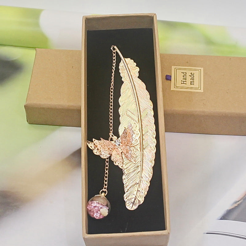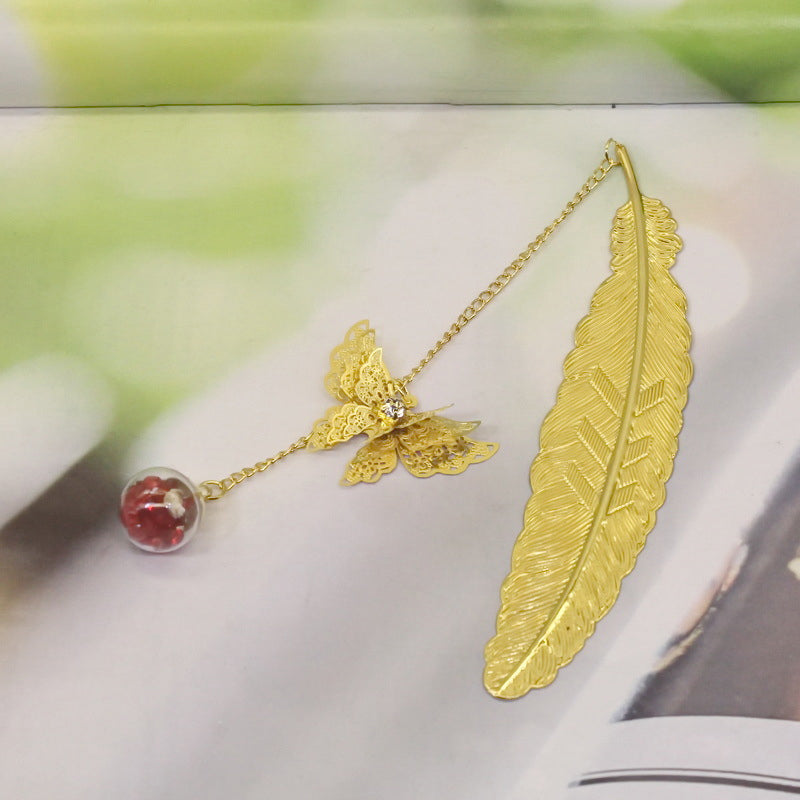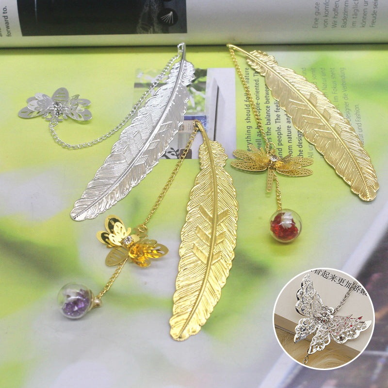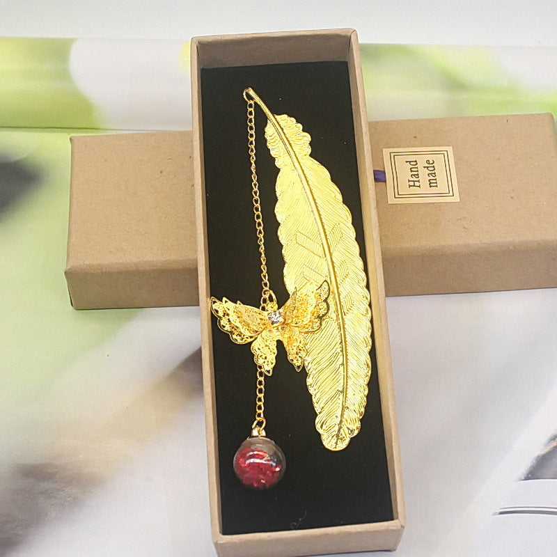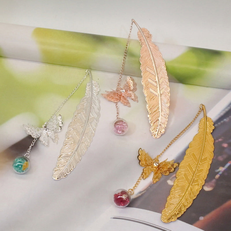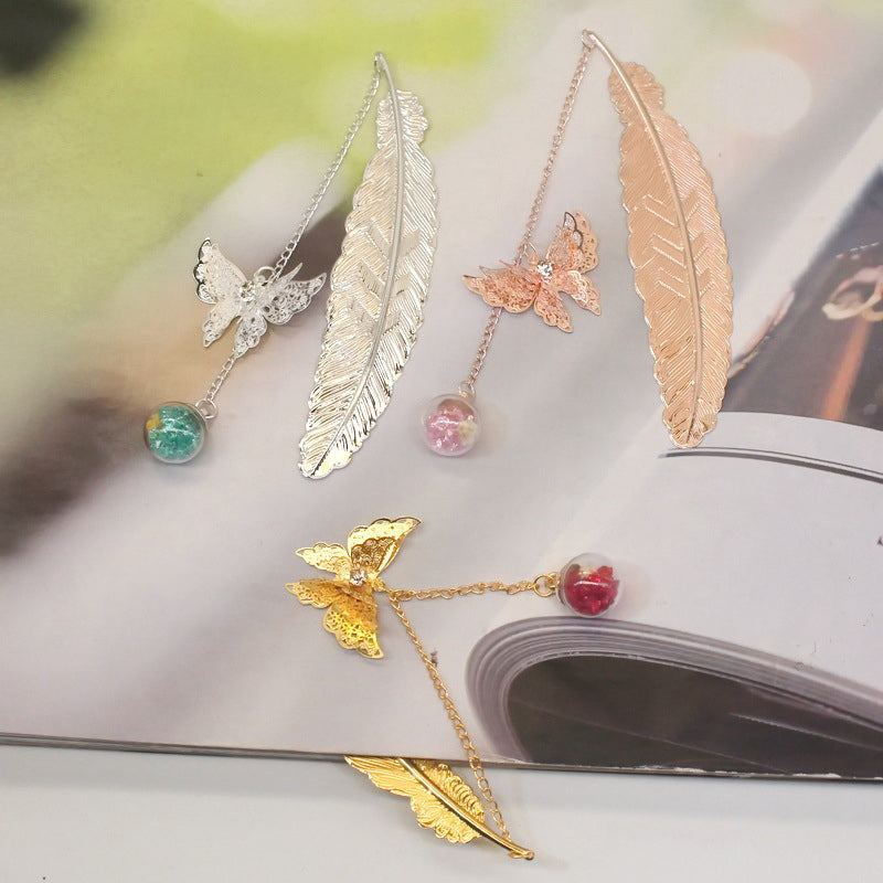 🪶Einzigartiges Design - Metallfeder-Lesezeichen im Vintage-Stil, mit einem realistischen 3D-Metall-Schmetterlingsanhänger und ewig getrockneten Blumen-Glasperlen-Anhängern, motiviert Sie zum Lesen und ist ein fröhlicher Themenstarter für alle Altersgruppen und Geschmäcker.