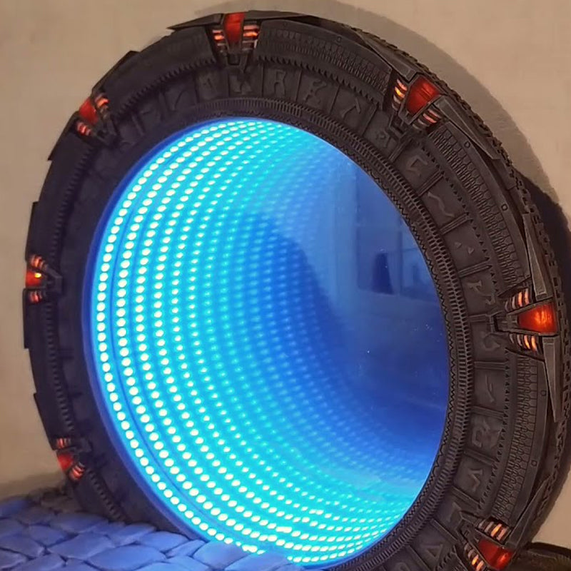 Der Wurmloch-Effekt besteht aus einem animierten Unendlichkeitsspiegel mit 122 LED's.