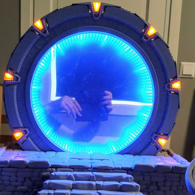 Einer vollständig interaktiver, funktionierender Sternentor mit einem DHD (Dial Home Device).