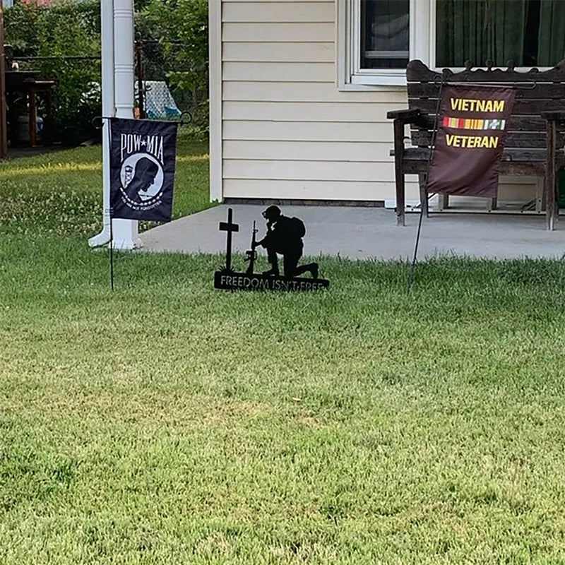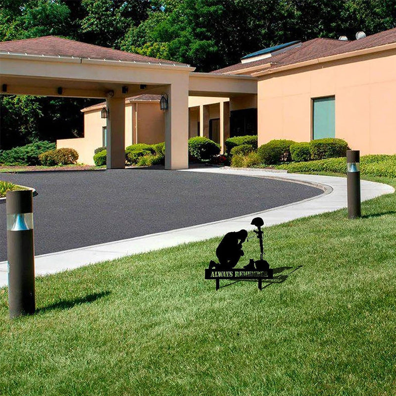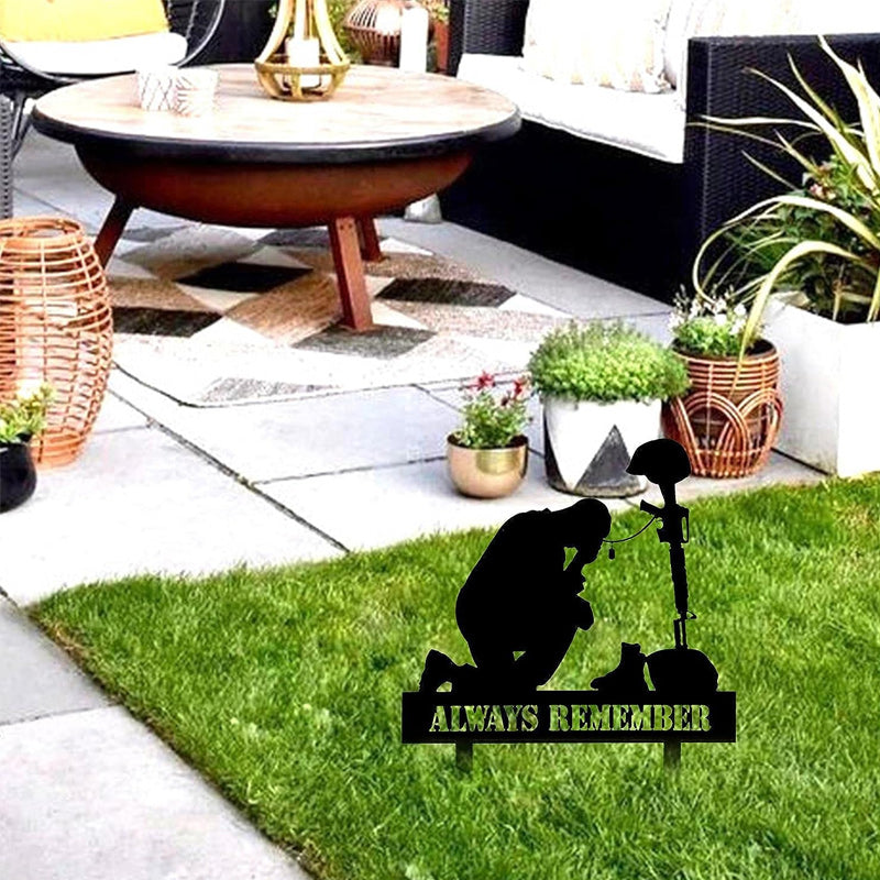 ➲Schön und stolz: Zeigen Sie Ihren Helden Respekt und Dankbarkeit mit dieser Soldatensilhouette. Mit seinem Design in Form eines knienden Soldaten und einer einfarbig schwarzen Außenseite wird es Ihren Außenbereich schön und stolz machen.