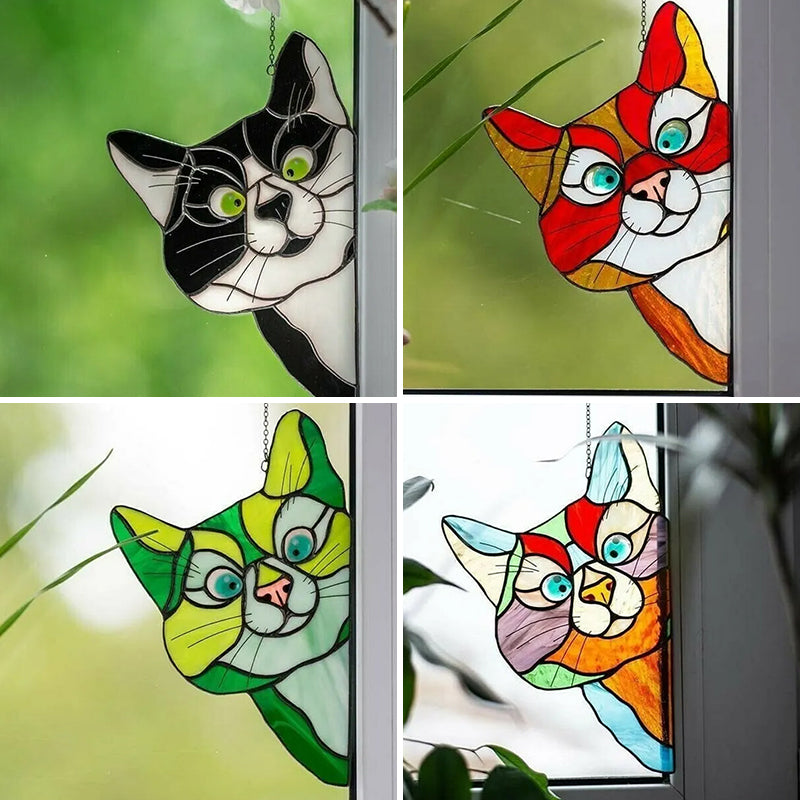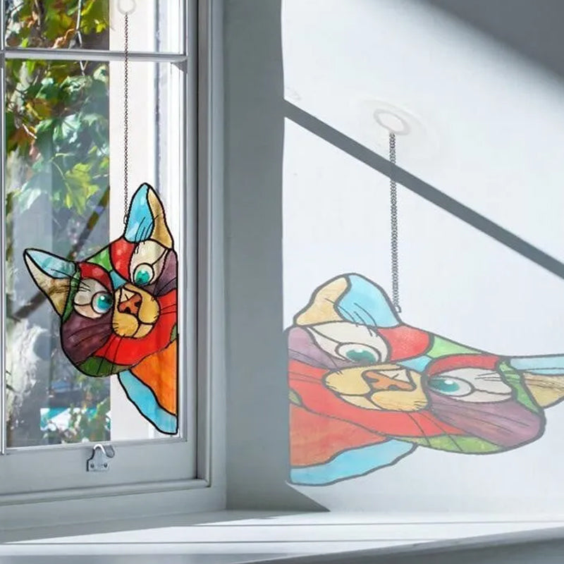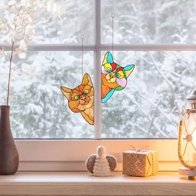 1* Handgefertigter Gebeizter Katzen-Sonnenfänger für Fenster