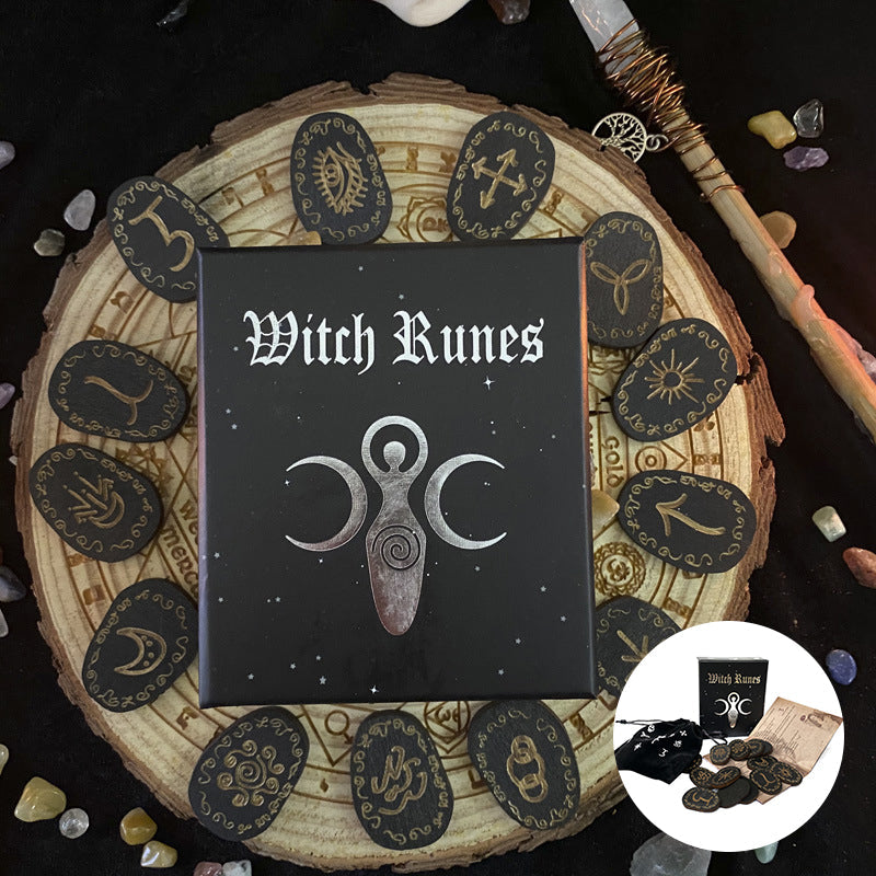 • Hexenrunen sind eine moderne Variation historischer Runen mit Piktogrammen, die Götter, Göttinnen und Symbole darstellen, die modernen Hexen vertraut sind. Die Runen können verwendet werden, um Sie durch Probleme zu führen und Ihnen zu zeigen, was wahrscheinlich passieren wird.