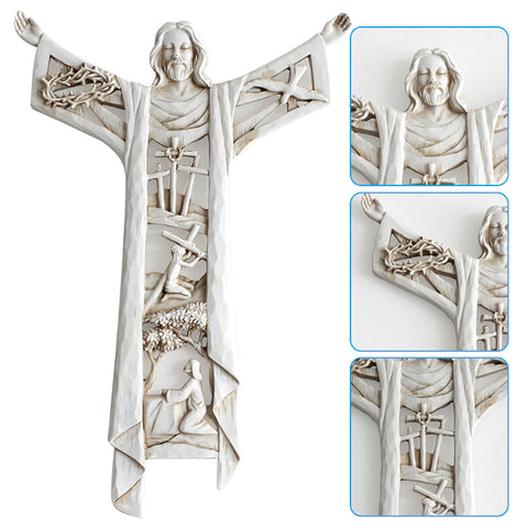 Dies ist ein tolles Weihnachtsgeschenk ♥️: Einzigartig gestaltetes Auferstehungs-Christus-Wandkreuz; neutrale Töne, dimensionale Details des Lebens Christi im ausgeschnittenen Design. Der auferstandene Christus, dessen Leiden bald beginnen würde, spürte die schreckliche Last der Sünde.