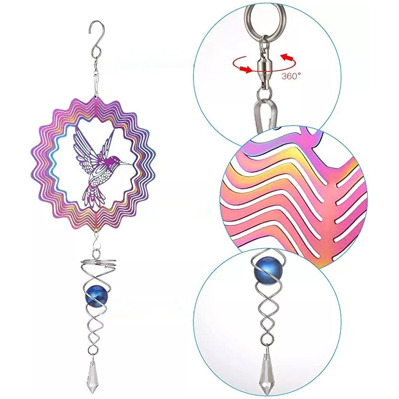 • 【Einzigartiges Design】 Das hängende Windspiel hat ein wunderschönes Kolibri-Design mit einem kleinen Kugelspiralschwanz darunter und erzeugt einen faszinierenden rotierenden visuellen Effekt, wenn der Wind weht. Es ist einfach, den gewünschten Winkel zu öffnen.