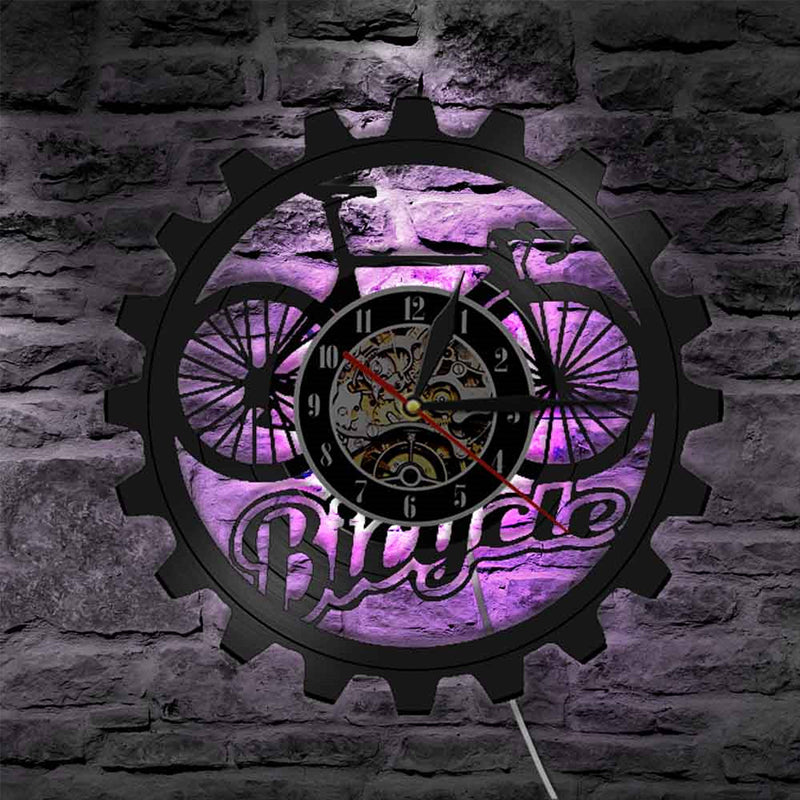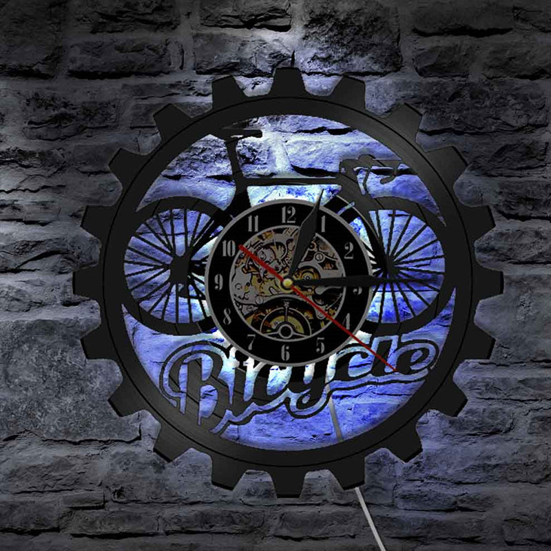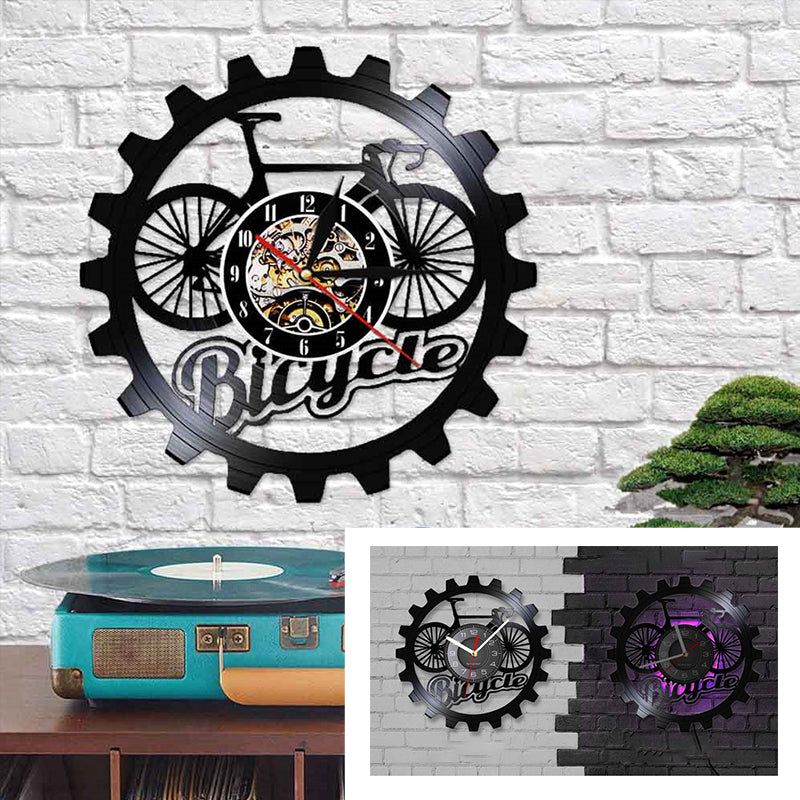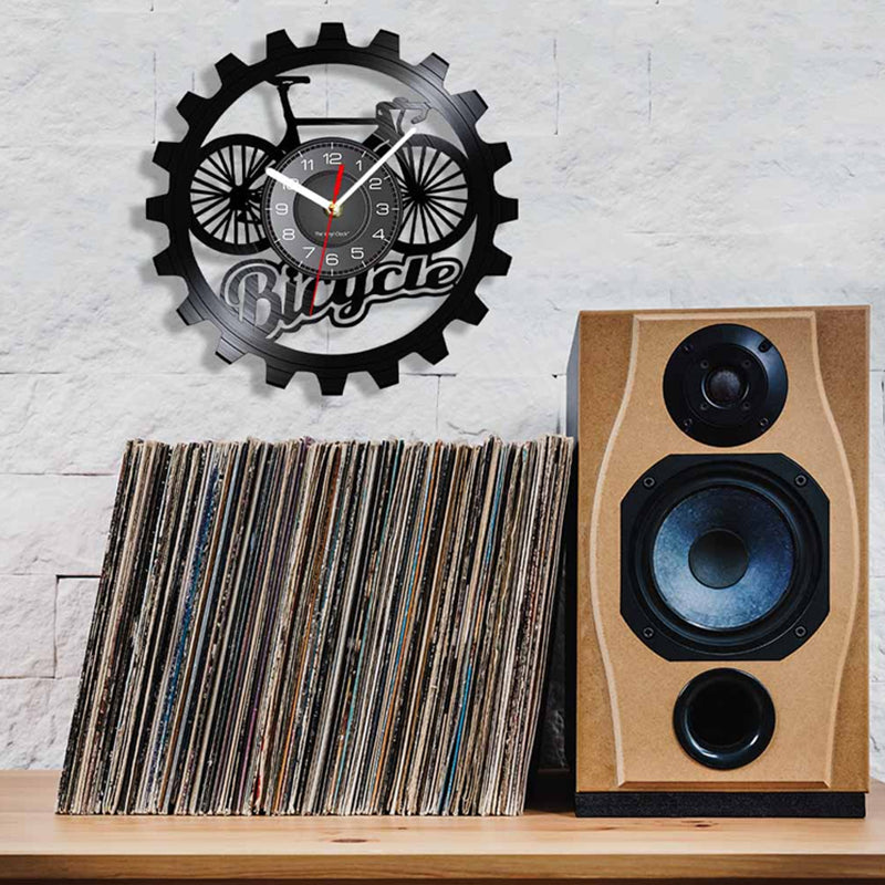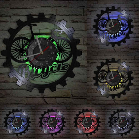 • Diese Fahrraduhr besteht aus Vinyl und verfügt über LED-Leuchten, was sie zu einem großartigen Geschenk oder Stück für Zuhause, Garage oder Arbeitsplatz macht.