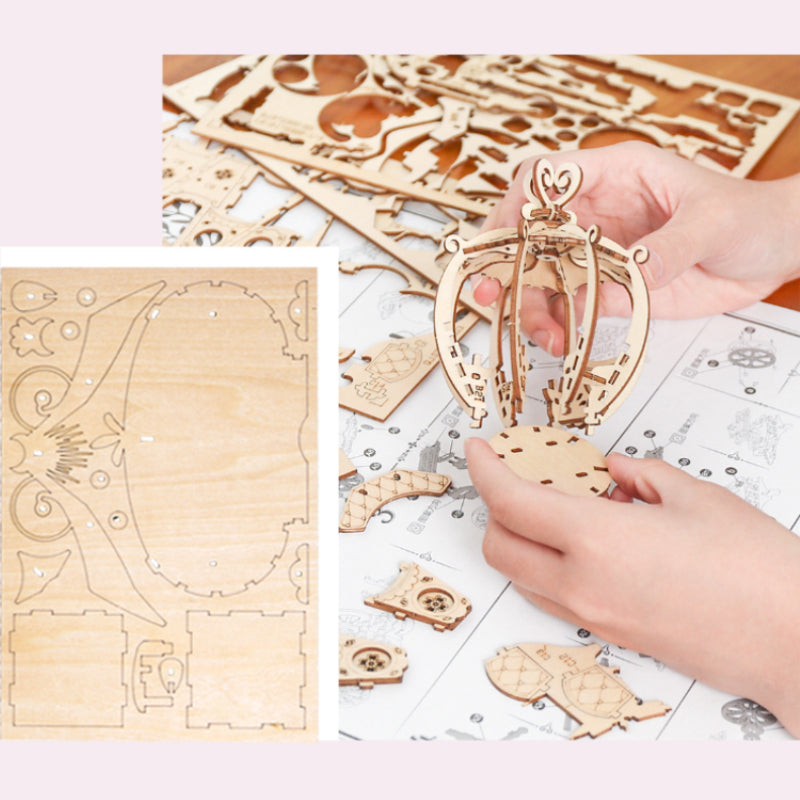 Schwierigkeitsgrad: Primarstufe: Geeignet für Kinder ab 14 Jahren und Erwachsene. Wenn Sie noch keine Erfahrung mit Holz-3D-Montageprodukten haben und ein wenig zögern, können Sie dieses Produkt verwenden, um den Spaß am Einsteck- und Zapfenhandwerk zu üben und zu erleben.