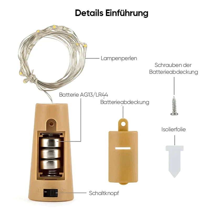 Verwandeln Sie jede Flasche im Handumdrehen in eine schöne Lampe, mit kostenloser Batterie, und schon bald wird Ihr Zimmer in ein himmlisches Licht getaucht sein.