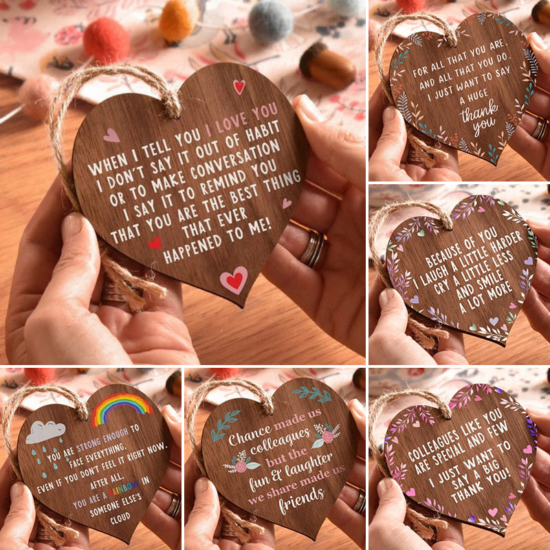 Dieses kleine Geschenk enthält endlose Liebe. Dekoratives Holzschild kann eine großartige tägliche Erinnerung sein. Sie können an der Wand, an der Tür, am Flaschenhals usw. hängen. Lassen Sie die Menschen, die Sie lieben, Sie jederzeit und überall sehen, um an Ihr Herz zu denken.