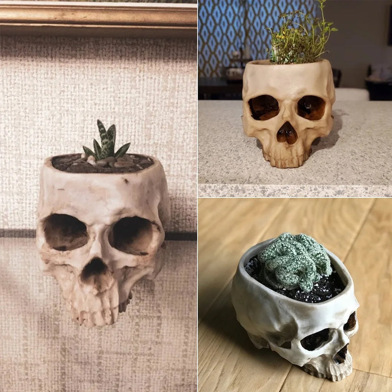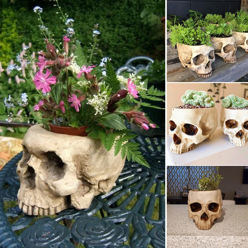 💀 Diese Totenköpfe sind vielseitig einsetzbar und können als Übertopf, Stifthalter, Vase, Halter für Kamm, Bonbonschale, flammenloser Teelichthalter, Auffangschale und vieles mehr verwendet werden!