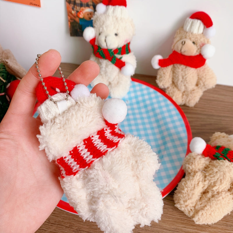 Süßer Weihnachtsbär: Dieser Schlüsselanhänger ist als Bär mit Schal gedacht, um einen Weihnachtsschal zu tragen, der Schal ist abnehmbar, er sieht sehr interessant und besonders aus. Gute Dekoration für Schlüssel, Taschen.