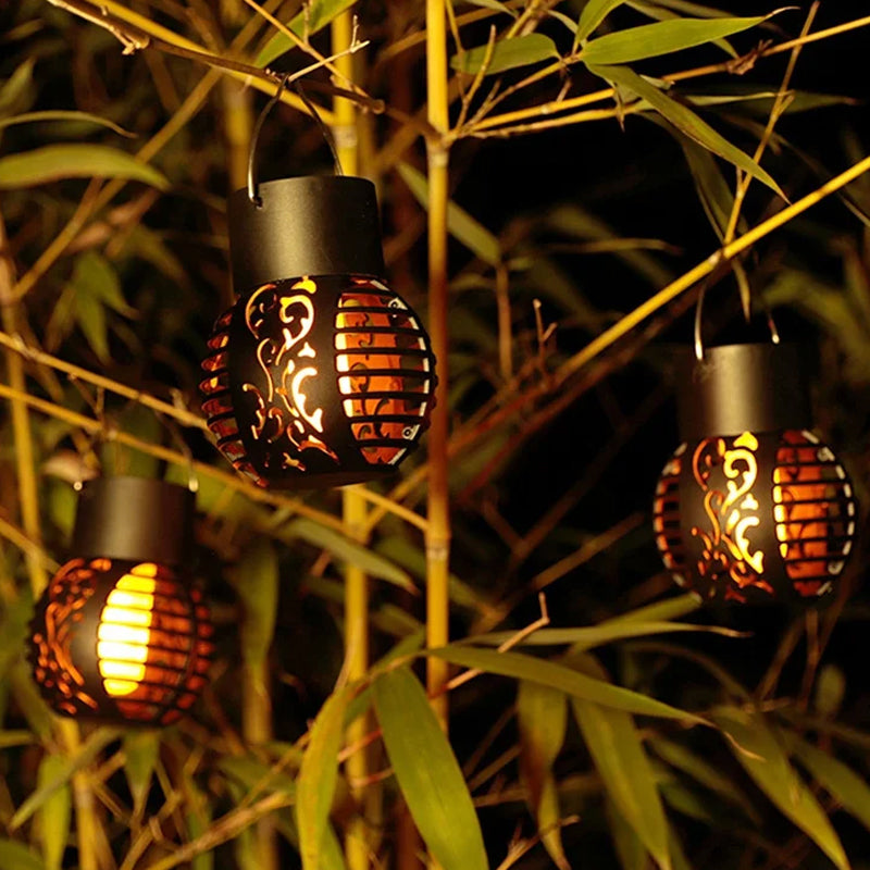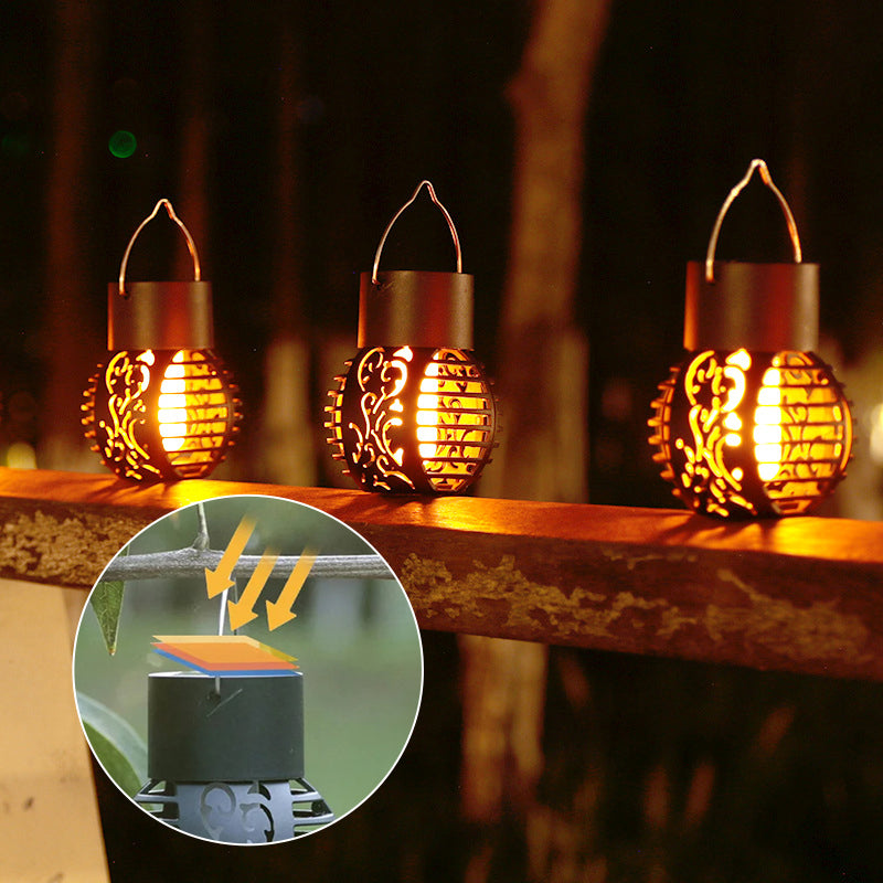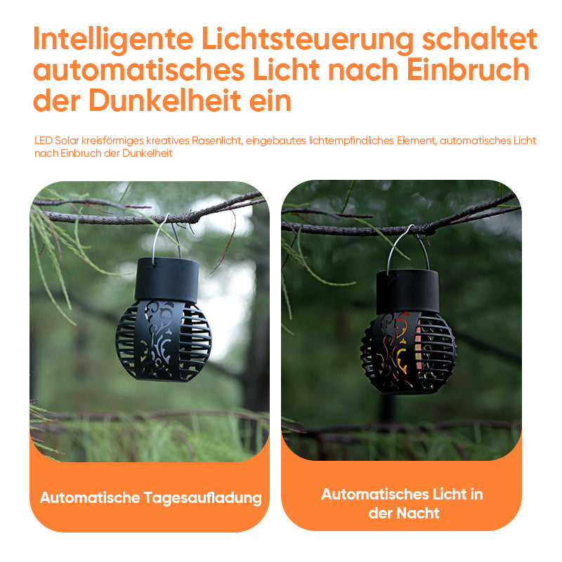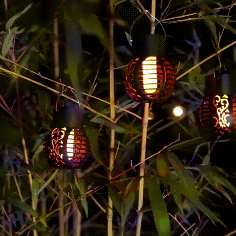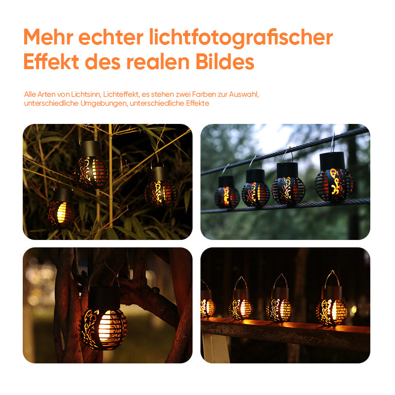 🌟 LED-Solarlaternen: Das simulierte Flammendesign der Sonnenflammenlampe für den Außenbereich sorgt für eine lebendige Atmosphäre in der stillen Nacht. Gleichzeitig hat die Solarflammenlaterne für den Außenbereich ein Retro-Muster und ein elegantes Hohlkonzept.