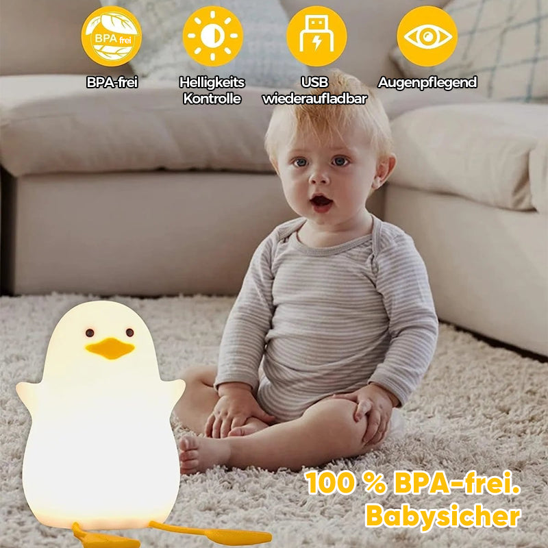 ★BPA-freies Sicherheitslicht★ Das Silikon-Enten-Schlaflicht besteht aus ungiftigem, babysicherem BPA-freiem Silikon, um Sicherheit zu gewährleisten, und der weiche Baby-Nachtlichtschirm ist leicht zu tragen und nicht leicht zu zerbrechen. Warmes LED-Licht schadet weder dem Flackern noch Ihren Augen.