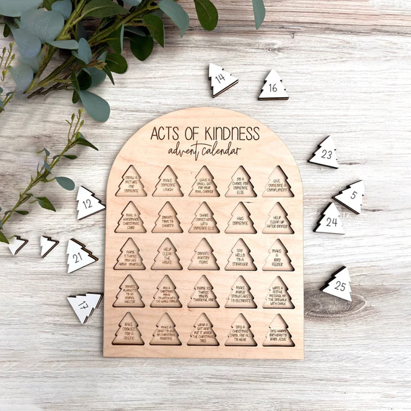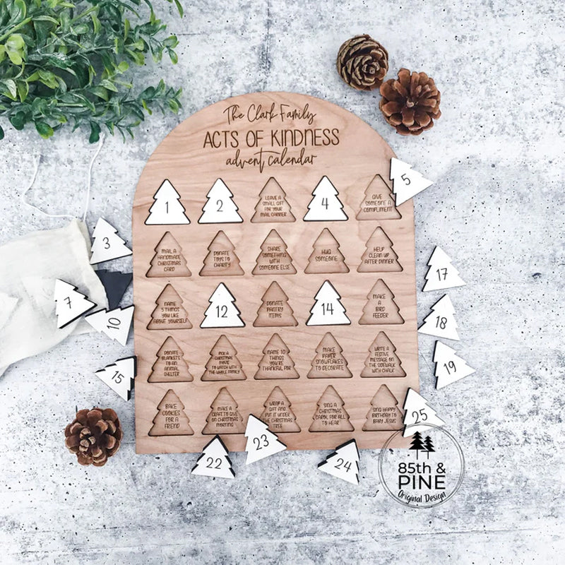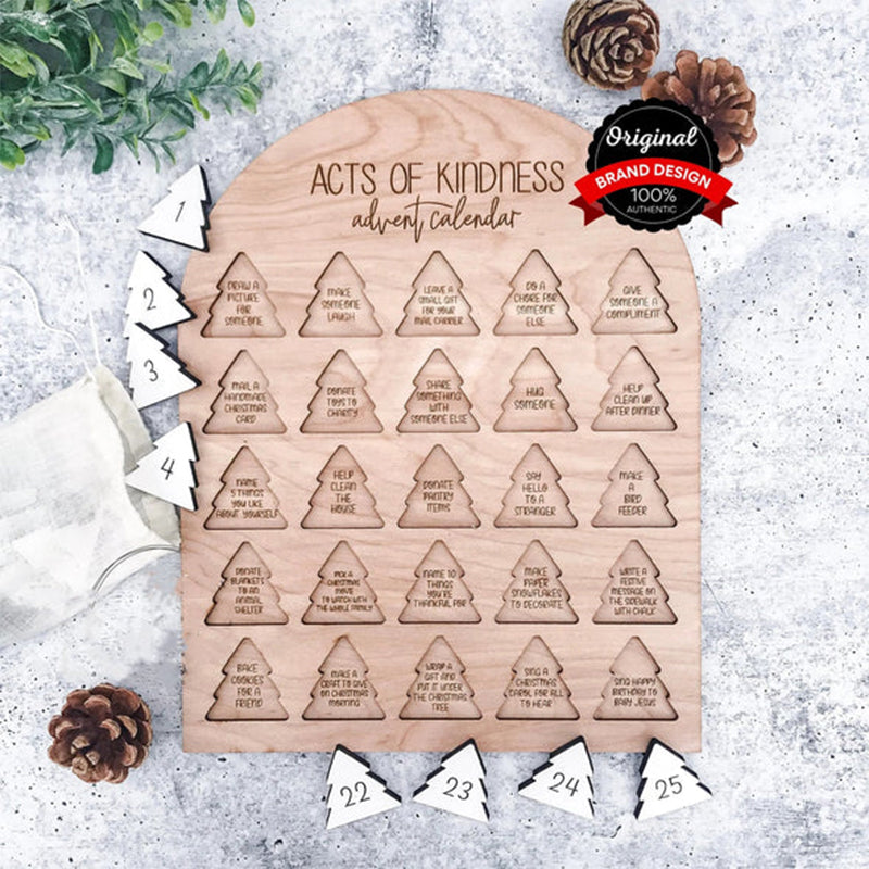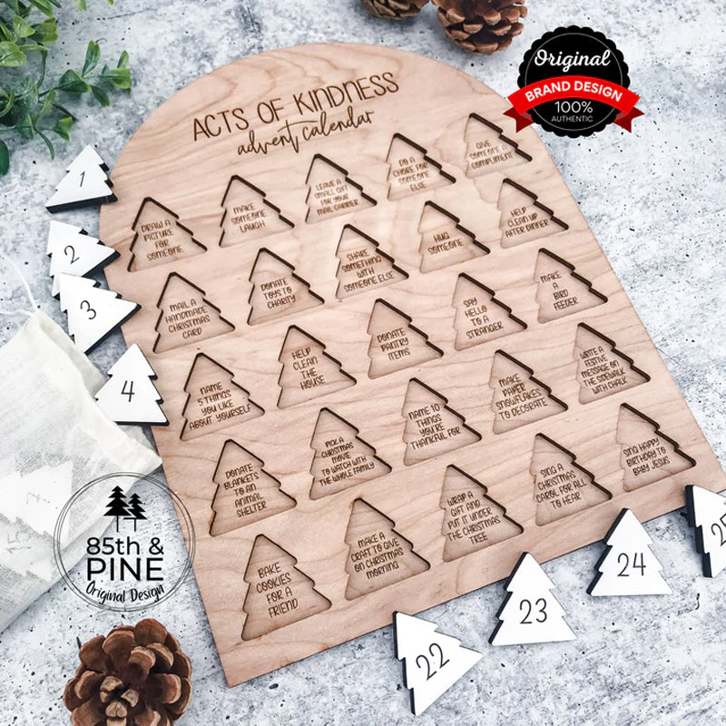 - Dieser hölzerne Adventskalender ist die perfekte Art, sich auf Weihnachten vorzubereiten. Eine Familienaktivität, die uns mit freundlichen Taten näher zusammenbringt. Dieser Kalender kann Jahr für Jahr verwendet werden, um eine neue Familientradition zu schaffen!