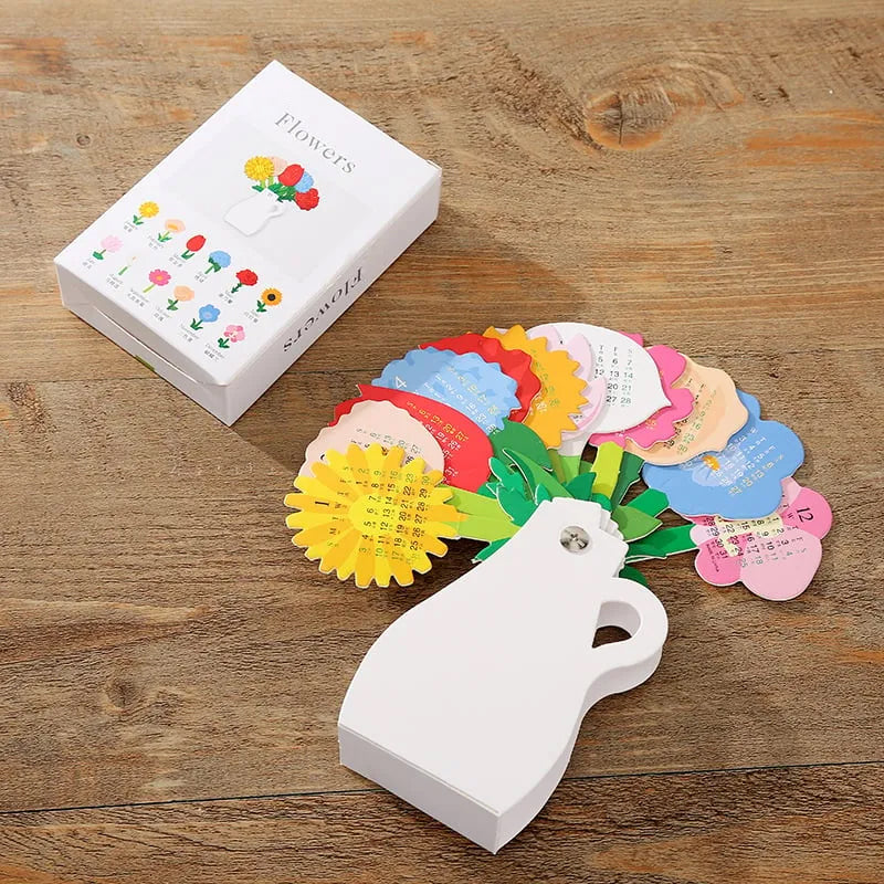 BUNT UND DEKORATIV: Der einzigartige Tischkalender in Blumenform verfügt über lebendige Farben zur Dekoration des Schreibtisches, sodass Sie Ihre Aktivitäten auf farbenfrohe Weise planen und verfolgen können.