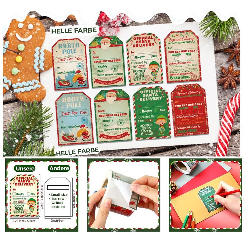 🎅Hochwertiges Material: Die Weihnachtsmann-Geschenkaufkleber bestehen aus hochwertigem Schreibpapier mit ansprechender Optik und klarem Digitaldruck; Sie können die Weihnachtsgeschenkanhänger problemlos mit einem Bleistift, Kugelschreiber oder Marker beschriften, wodurch Sie all Ihre Weihnachtsgeschenke mit personalisierten Namensschildern versehen können