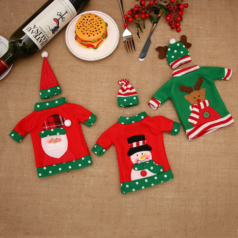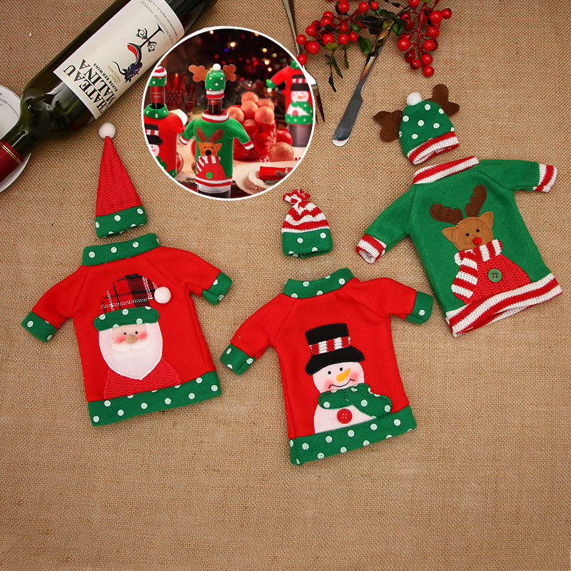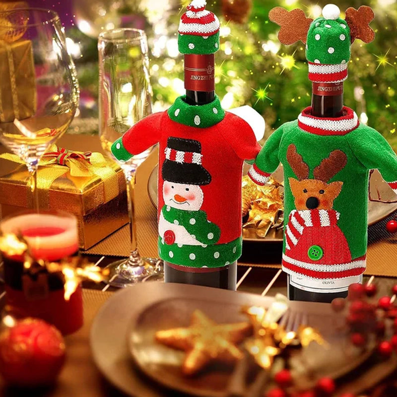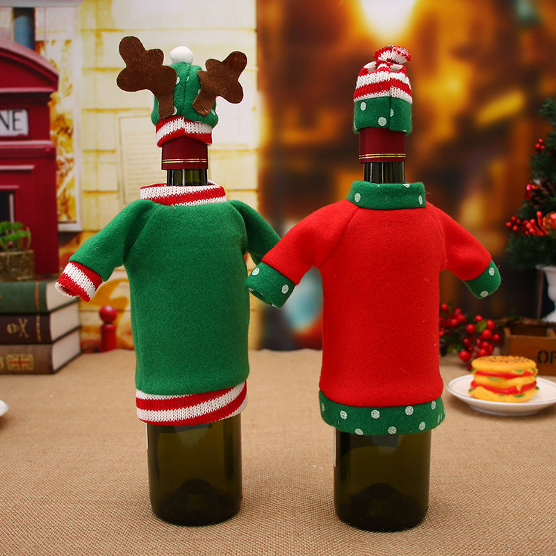 Gute Weihnachten Tischdekoration: Weihnachtsdekoration Tisch-Macher eine sehr niedliche Urlaub Display für Weinflaschen, füllen Sie Ihr Abendessen mit Weihnachtsstimmung, machte Ihr Essen Prozess sehr festlich, lassen Sie Ihren Urlaub Nacht genießen.