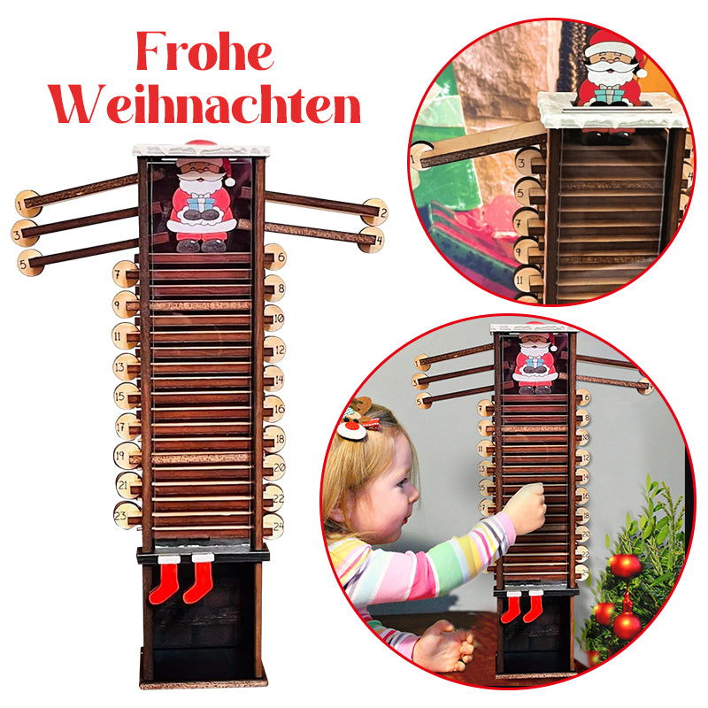 【Einzigartiges Design】Während jedes der 24 Tage des Countdowns werden auf jeder Tafel des Adventskalenders Zahlen gezeichnet, und der Weihnachtsmann zählt den Schornstein herunter.