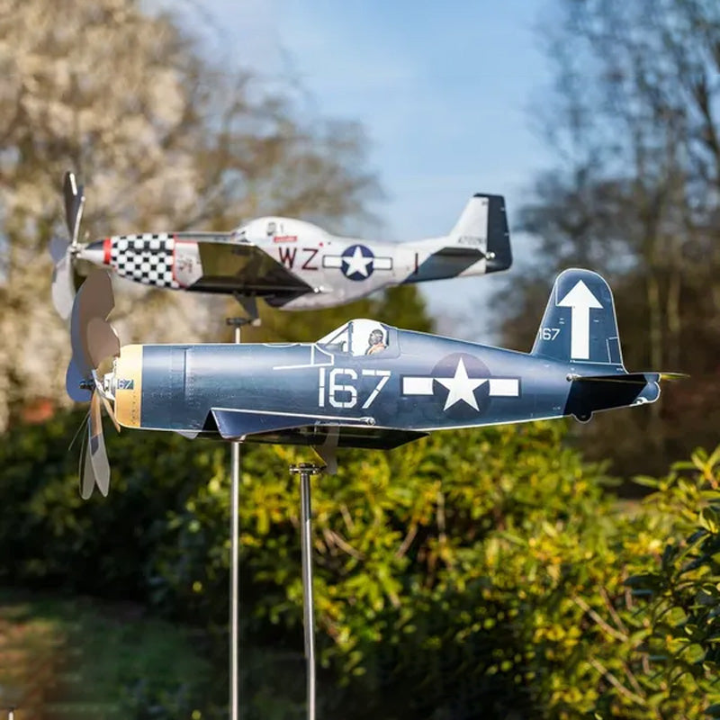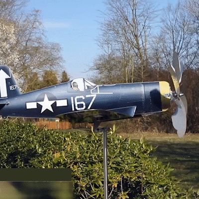 • Mit ihrem perfekten Design ist die Corsair das erfolgreichste Flugzeug, das auf Flugzeugträgern eingesetzt wird. Der Hauptzweck der Corsair lässt sich auch an den hier gezeigten Windturbinenflugzeugen erkennen, mit denen sie auch auf einem Flugzeugträger landen kann.