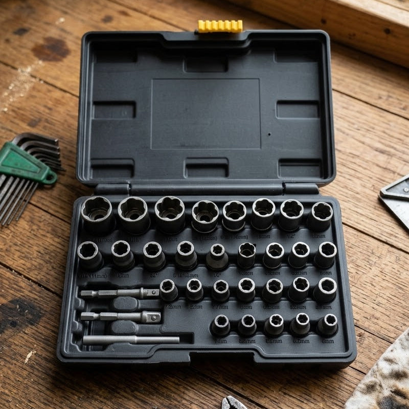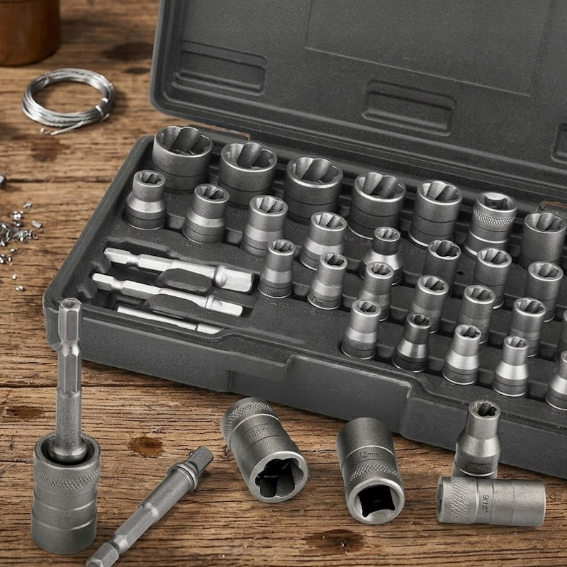 • 🔧 32-teiliges Profi-Set für jede Situation – Entwickelt zum mühelosen Entfernen beschädigter, abgenutzter oder festsitzender Muttern und Schrauben. Ideal für anspruchsvolle Reparaturarbeiten, bei denen herkömmliche Werkzeuge versagen.