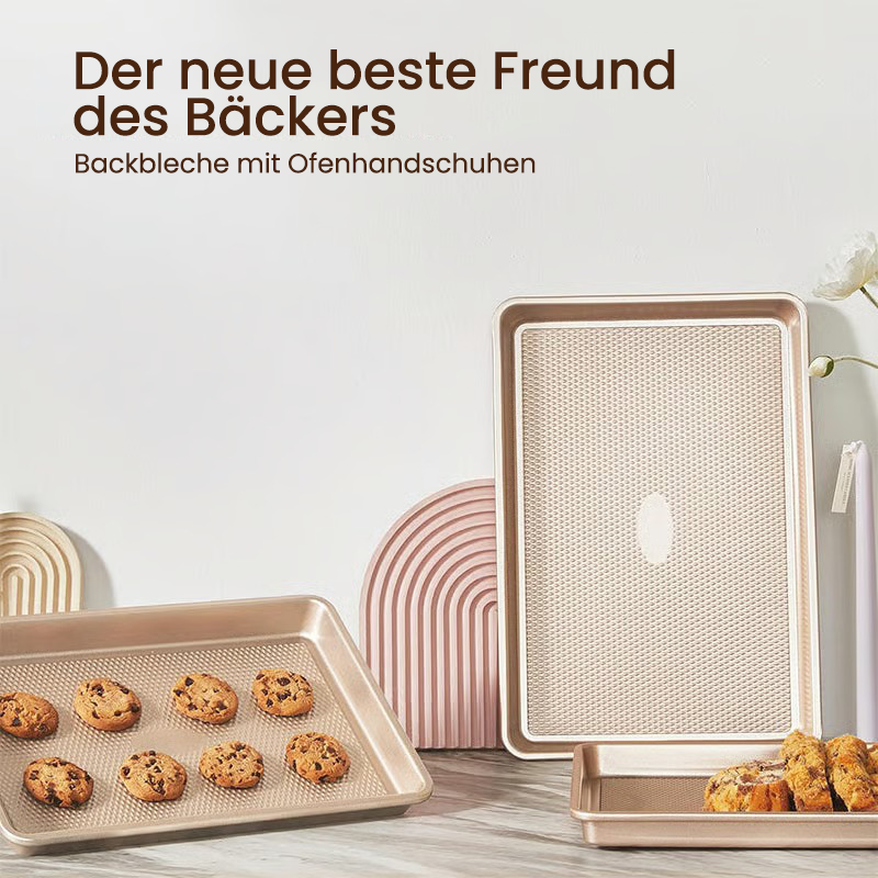 Exquisite Tischkunst: Dieses Backblech-Set ist nicht nur ein praktisches Backwerkzeug, sondern auch eine erschwingliche Tischdekoration. Hochwertige Küchenutensilien sollten Qualität und Ästhetik vereinen. Unsere einzigartige Backform in Champagnergold ist die perfekte Kombination aus beidem und verleiht Ihrem Esstisch eine elegante Optik.