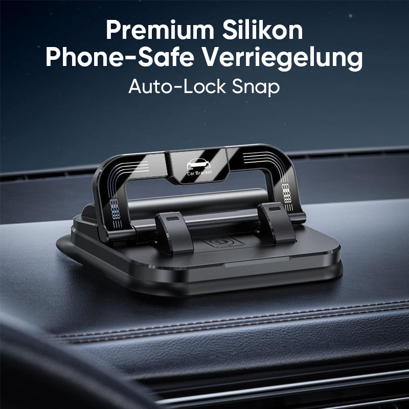 Einfach den Saugnapf auf der gewünschten Oberfläche platzieren, fixieren und das Handy anbringen. Mit 360°-Drehung und mehreren Winkelanpassungen bietet dieser Halter mühelose Bequemlichkeit für Navigation und Unterhaltung im Auto.