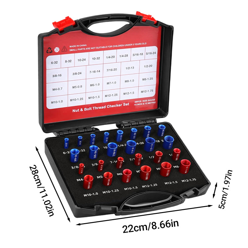 Neu verbesserte Verpackung – Alle Messlehren einzeln im EVA-Halter, leichter zu verwenden als Stahlgewindelehren.