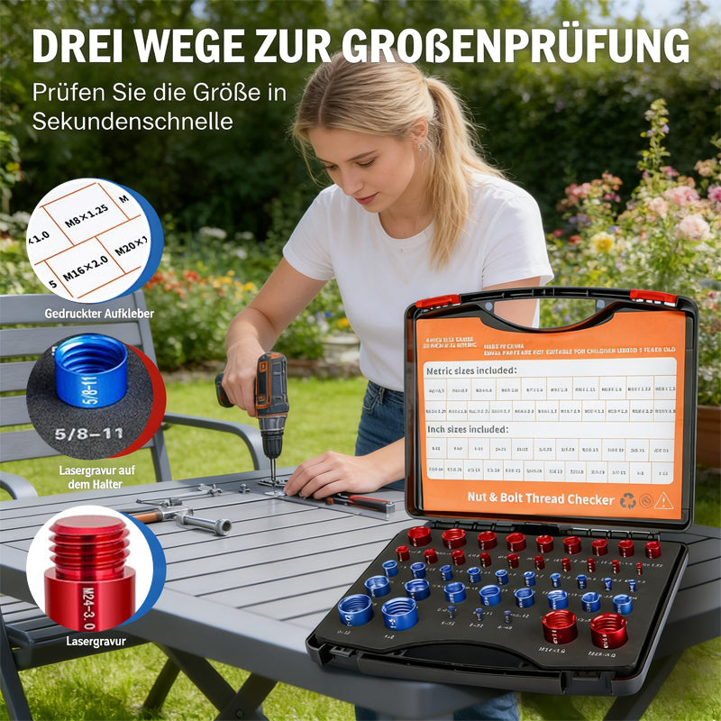 Schnelle Kontrolle – Überprüfen Sie Muttern- und Schraubengrößen in wenigen Sekunden.