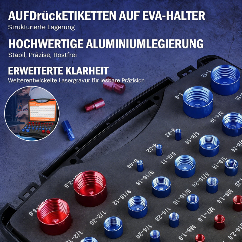 - Komplettes Set – 44/26 Teile metrisch (rot) & Zoll (blau) für alle gängigen Gewindearten.