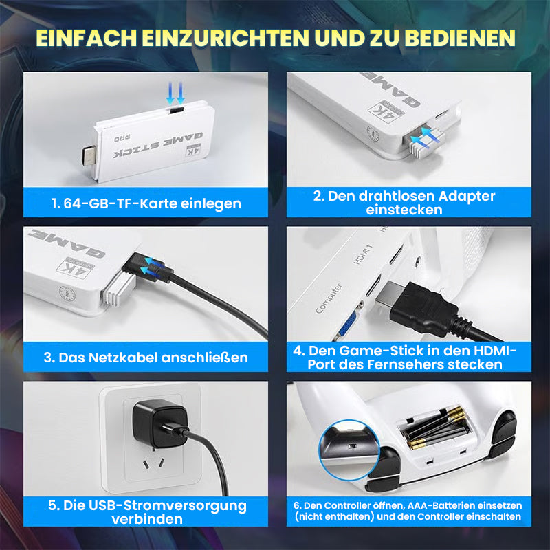 Schließen Sie die Konsole an Ihren Fernseher an und genießen Sie flüssige Grafik mit hoher Framerate – ein echtes Retro-Erlebnis mit modernem Komfort.