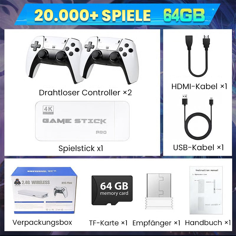Erleben Sie die Faszination klassischer Spiele neu mit der M15 Spielekonsole – eine kompakte All-in-One-Konsole, die Ihre Kindheit wieder aufleben lässt! Perfekt für Einzelspieler oder spannende Duelle mit Freunden.