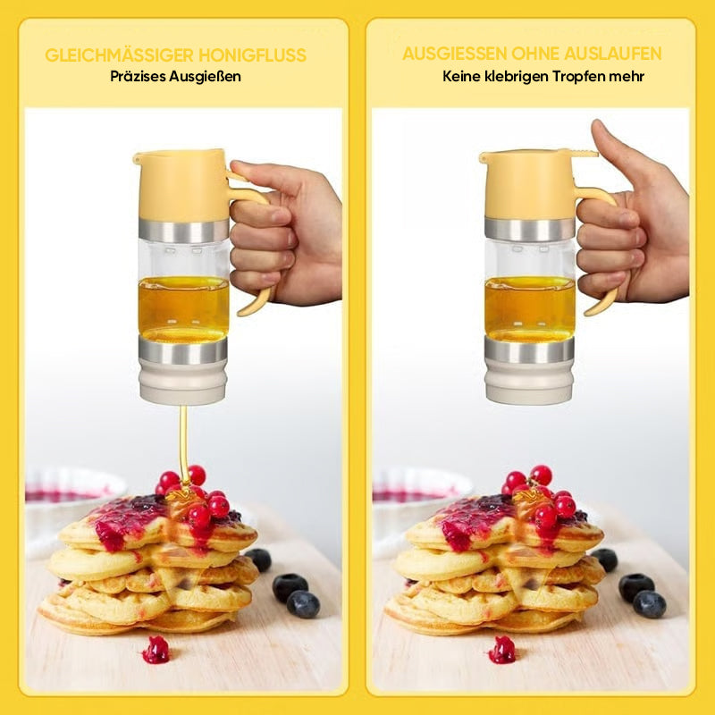 Der Glassirupspender verfügt über ein tropffreies Design, mit dem du Honig, Sirup oder Saucen ganz einfach durch sanftes Drücken ausgießen kannst. Einfach den Schalter loslassen, um den Fluss sofort zu stoppen und deine Arbeitsflächen sauber zu halten.
