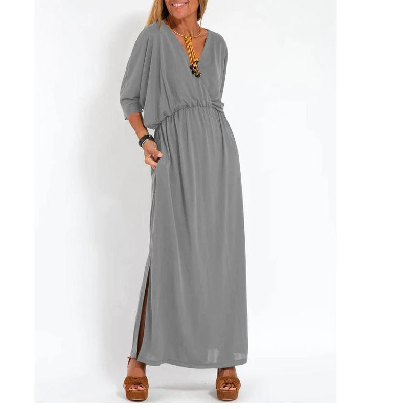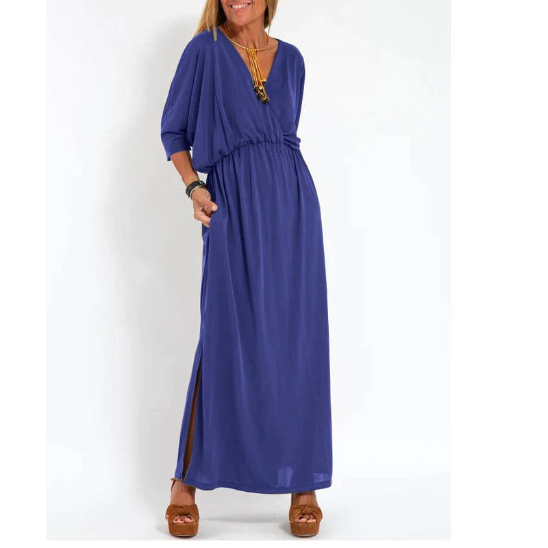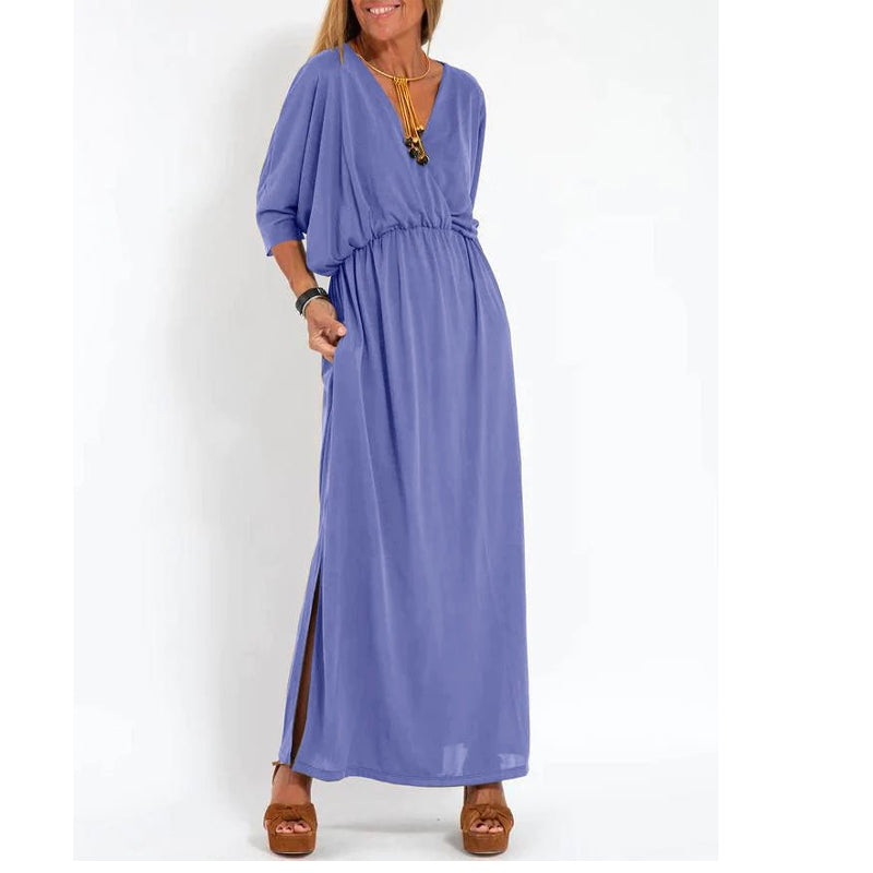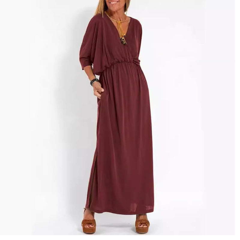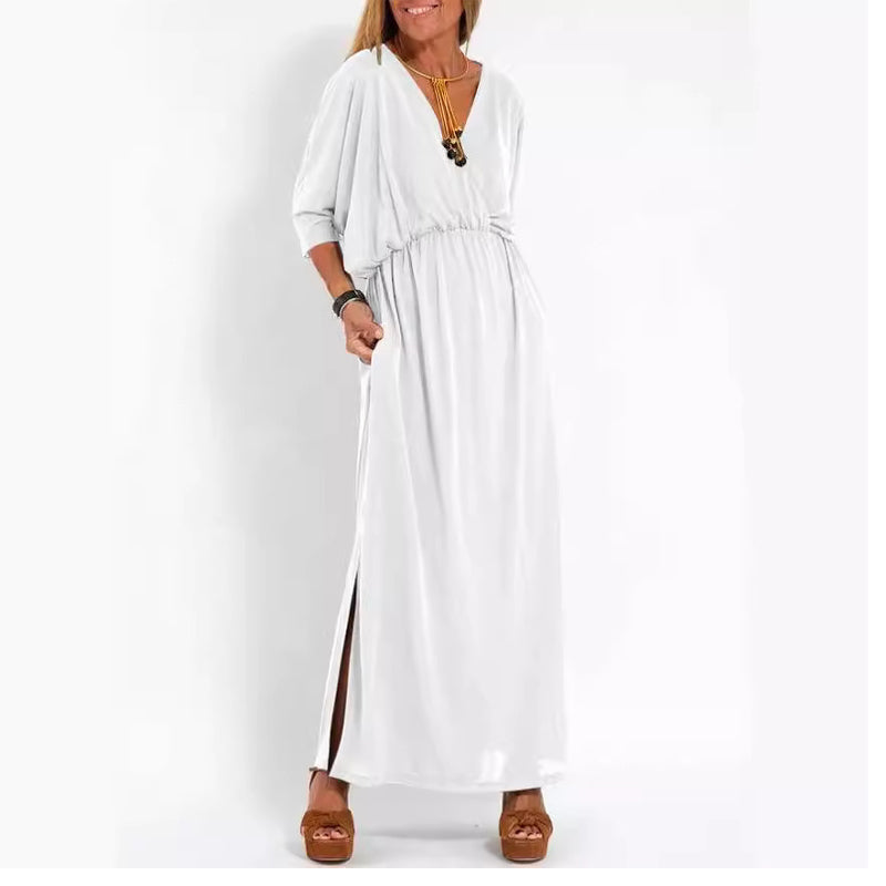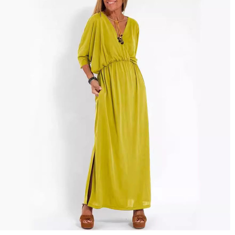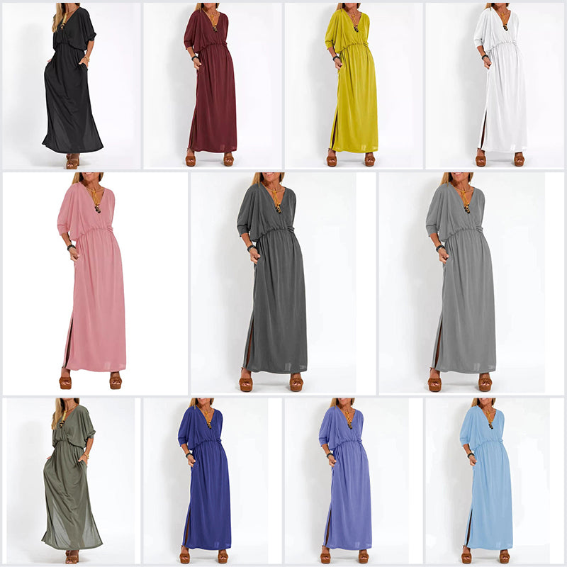 Paket: 1 * Lässig Farbe V-Ausschnitt Schlitz Kleid