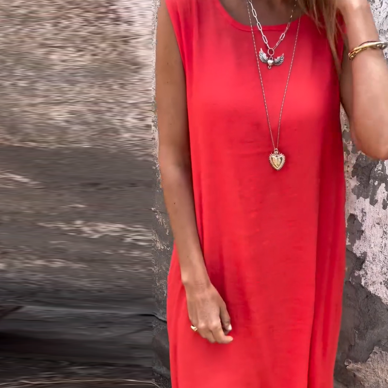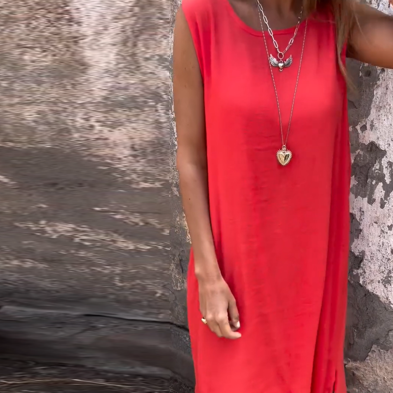 • Material: Das elegante, ärmellose, lange Kleid mit Rundhalsausschnitt ist aus hochwertigem Material gefertigt, das beim Tragen weich, bequem und atmungsaktiv ist.