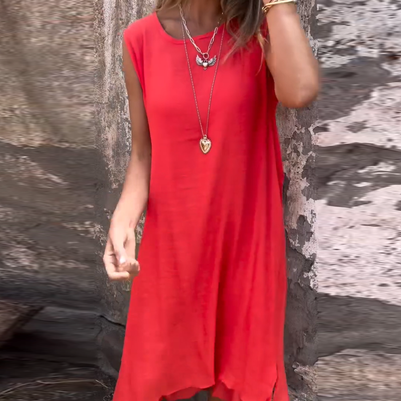 • 1 x Damen Ärmelloses Freizeitkleid mit Rundhalsausschnitt