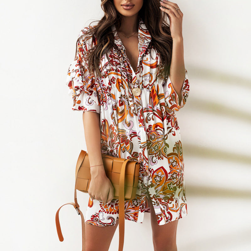Produktmerkmale: Langärmliges bedrucktes Damenkleid, Sie können es als Tunikakleid mit Knöpfen oder als langes Oberteil tragen; Fransen an Ärmeln und Saum, mittellanges Hemdkleid, Loose Fit, Distressed Boyfriend Shirt