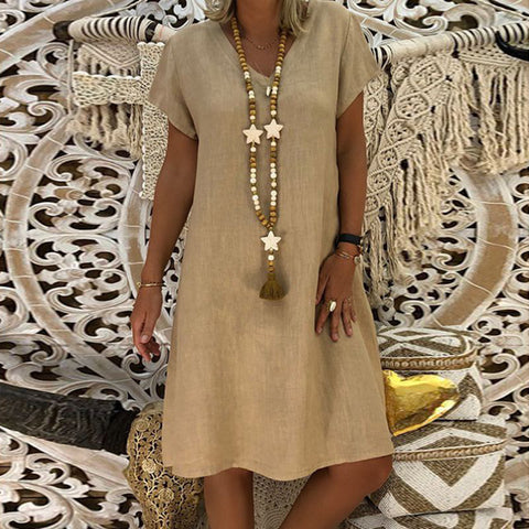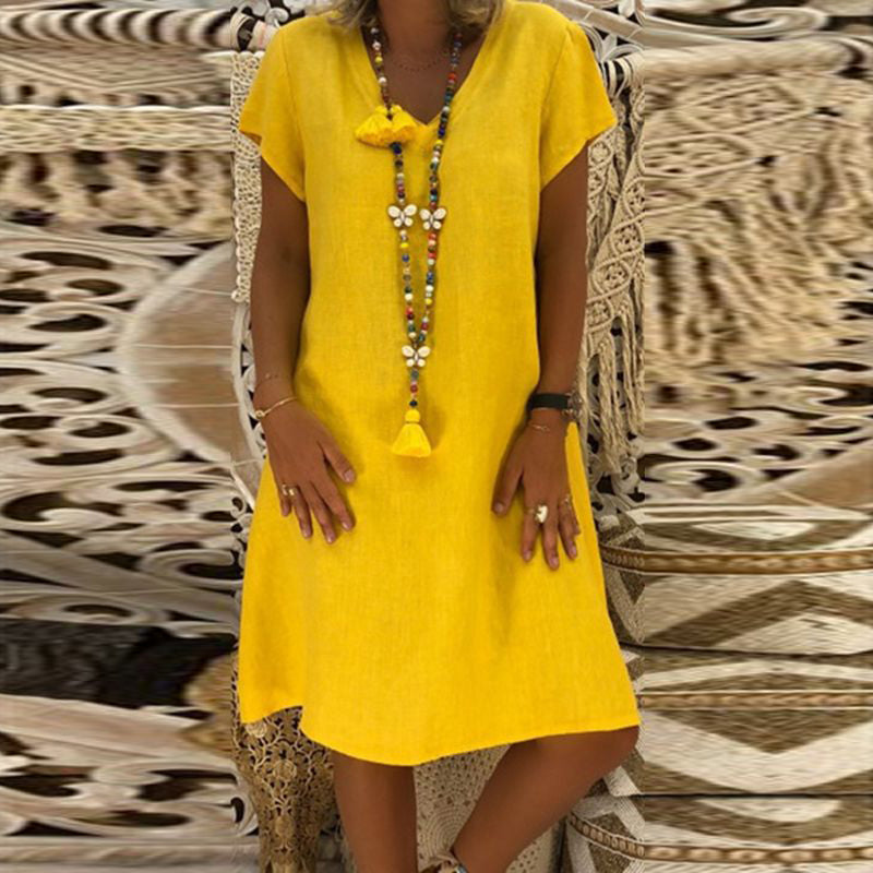 Eigenschaften: Sommerkleid/lockeres Kleid/unifarbener V-Ausschnitt Kurzarm-T-Shirt-Kleid/T-Shirt-Kleid/Tunika-Kleid/Sommerkleider für Frauen lässig/Unterkleid/V-Ausschnitt A-Linien-Kleid. Kurze Ärmel, lockere Passform, V-Ausschnitt, über dem Knie Länge, a-Linie, lässig lockeren Stil, Tunika T-Shirt Kleid.