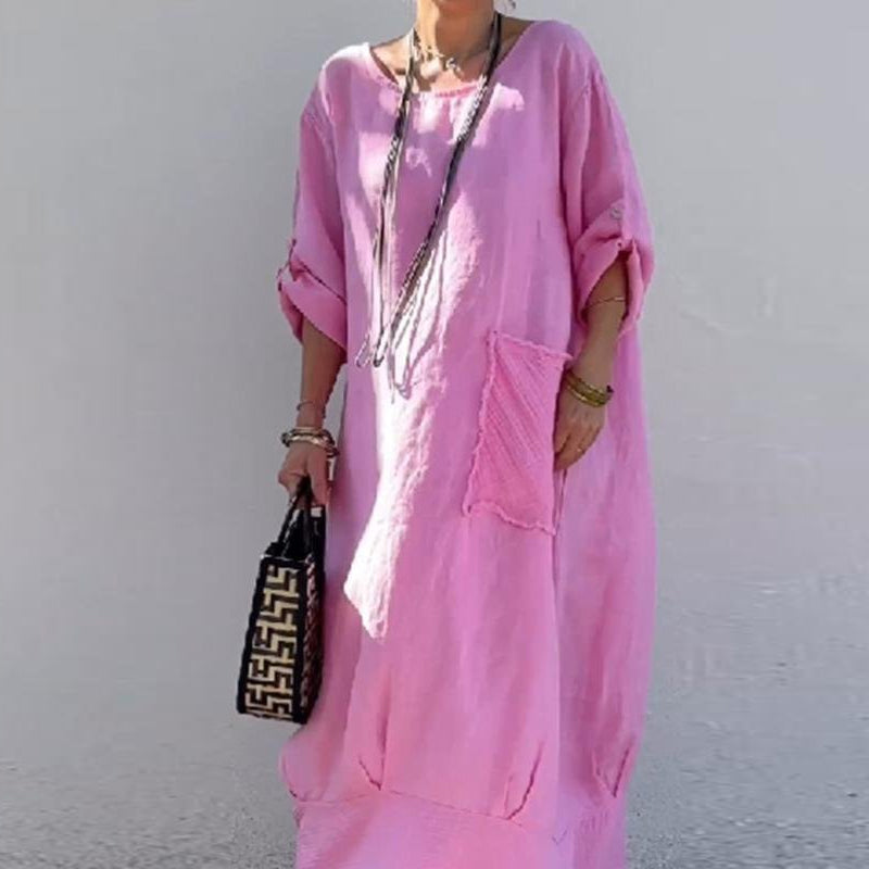 Paket: 1 * Einfarbig Tasche Rundhalsausschnitt Langes Kleid