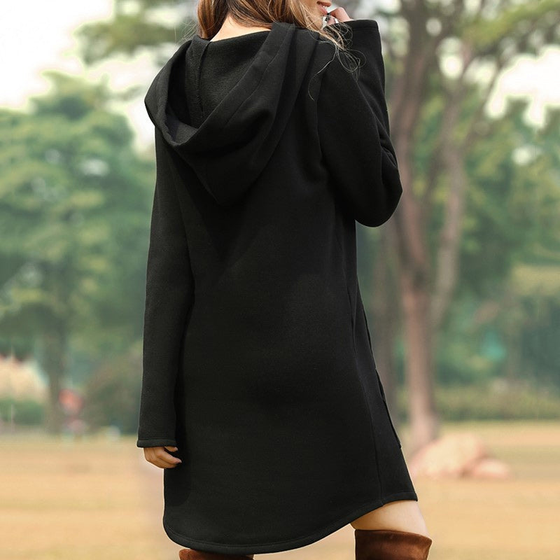 Einfarbiges Langärmliges Kapuzenkleid mit Taschen