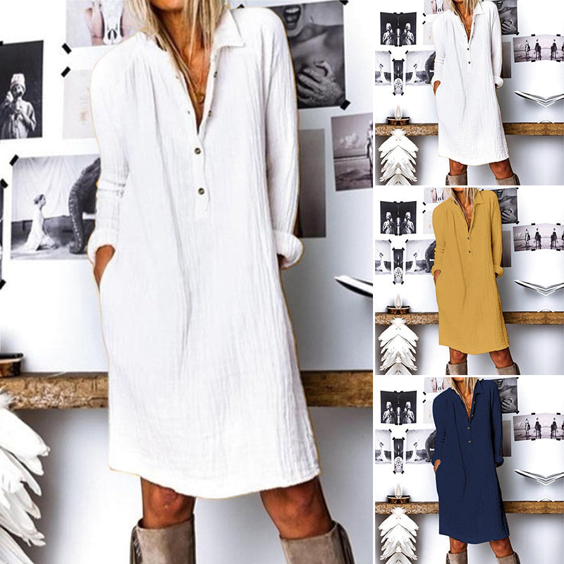 EINZIGARTIGES DESIGN: Das Kleid ist wie ein Hemd geschnitten, mit Knöpfen und Seitentaschen für ein klassisches Designelement. Das schlichte einfarbige Design spiegelt die elegante und freie Persönlichkeit wider.