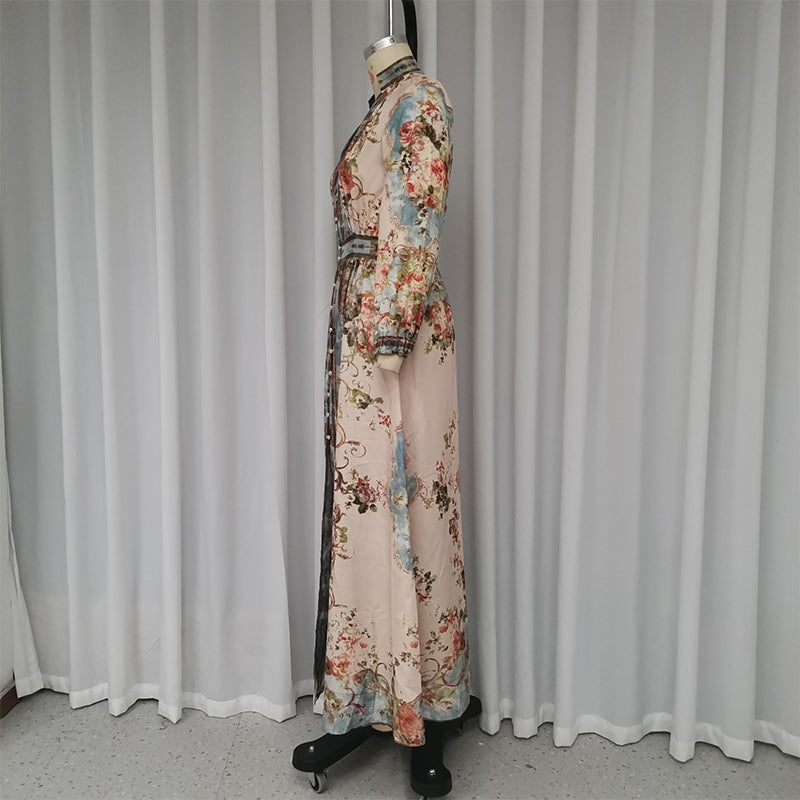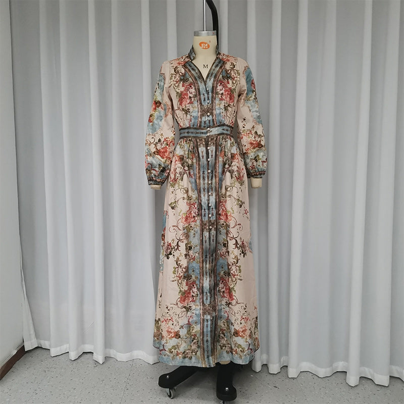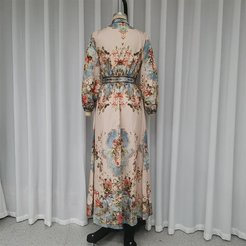 - 1 * Elegantes langes Kleid mit Vintage-Print