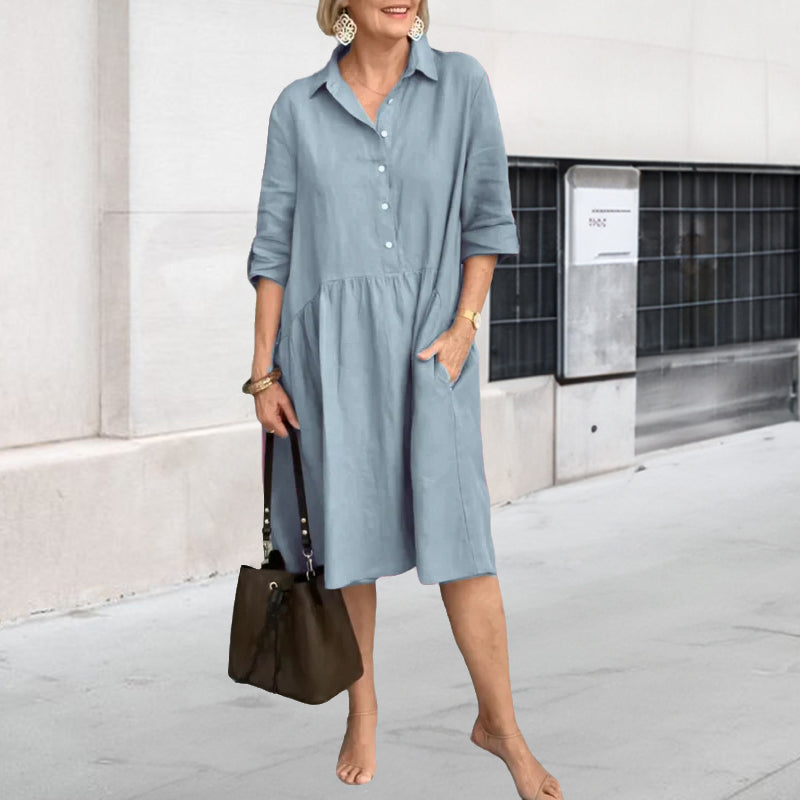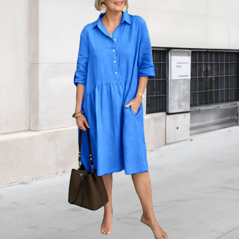 - 1* Freizeitkleid aus Baumwollleinen für Damen