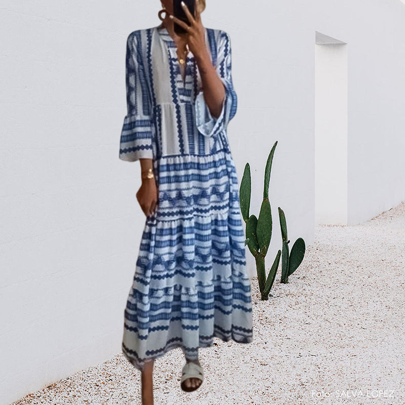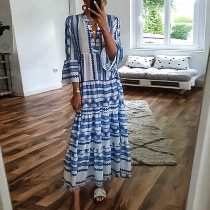 [Stylistisches Aussehen]: Ein langes Boho-Kleid mit tiefem V-Ausschnitt trägt zu Ihrem Glamour bei. Der gekräuselte, fließende Saum ist locker und bequem, damit Sie anders aussehen.
