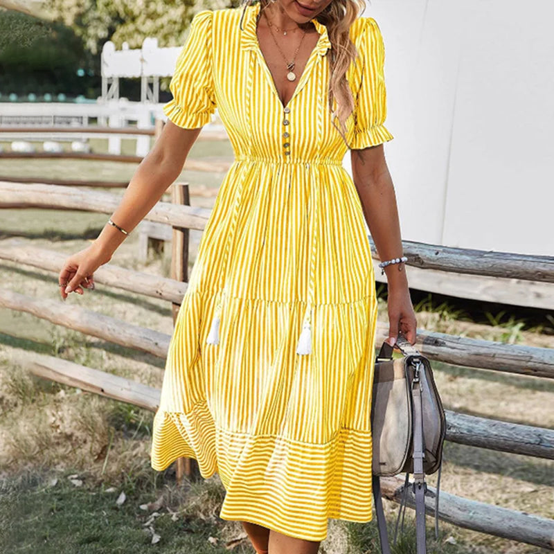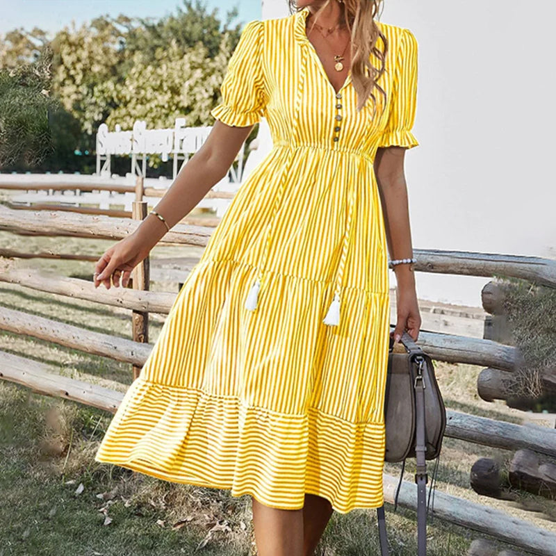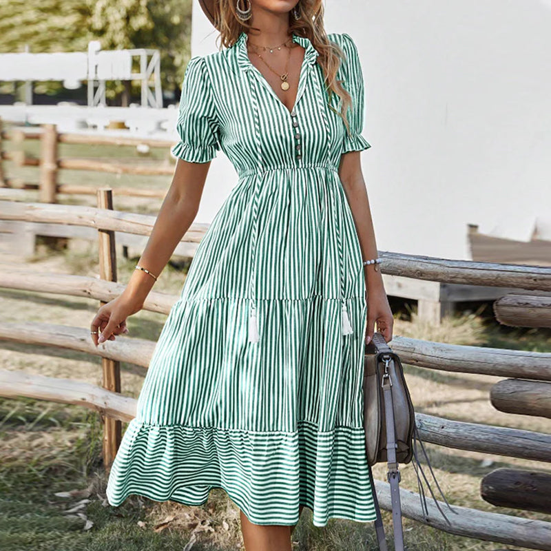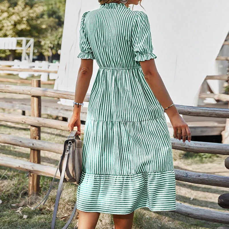• 1* Gestreiftes Kleid mit V-Ausschnitt