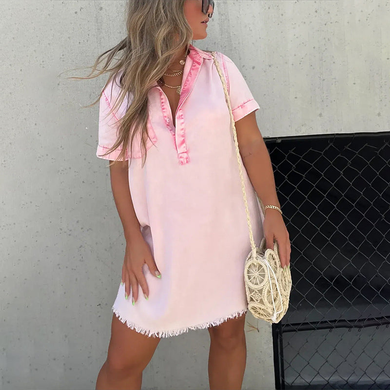 Jeanskleid mit Fransensaum