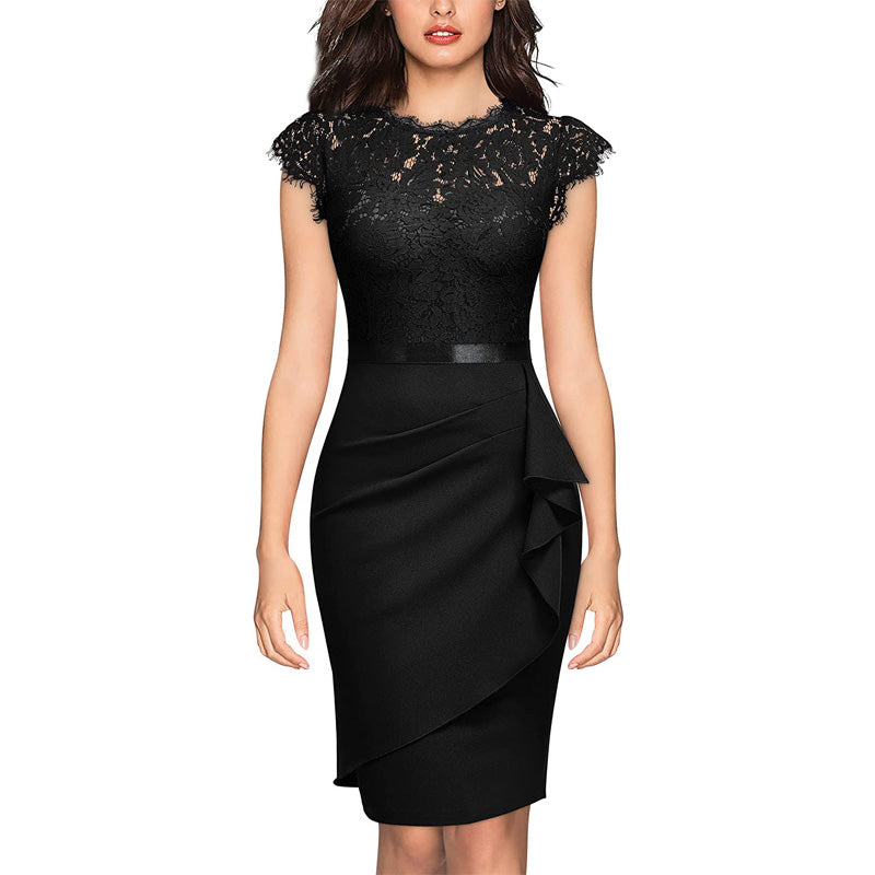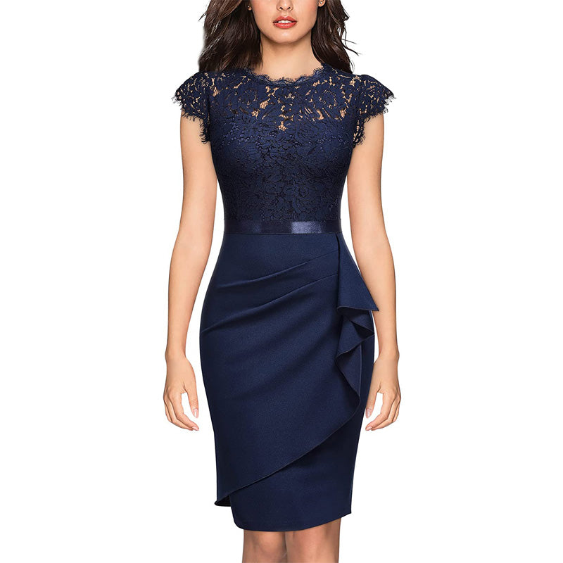 • Version: Hohe Taille, runder Ausschnitt, Spitze, sexy Party-Abendkleid.