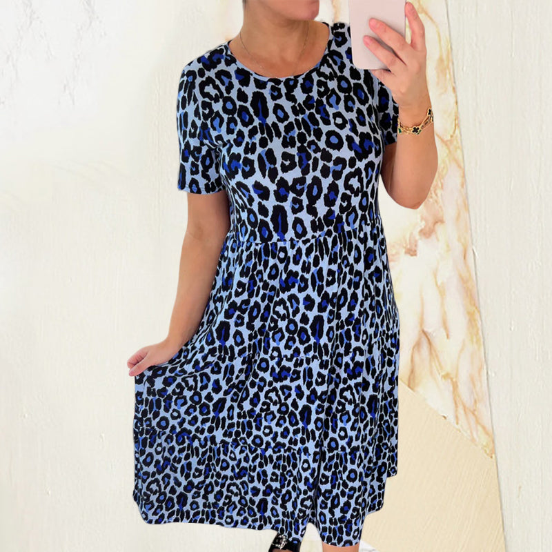 Paket: 1 * Kleid mit Rundhalsausschnitt und Leopardenmuster