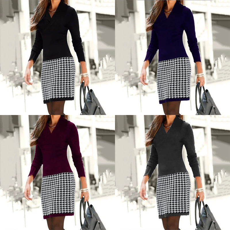 • Design: Das Farbblockkleid, sexy V-Ausschnitt und Langarm-Design, Musterdekoration, modisches und klassisches einfarbiges Design, schlicht und elegant, zur Verschönerung der Körperproportionen, ein unverzichtbares kleid im frühjahr und herbst.