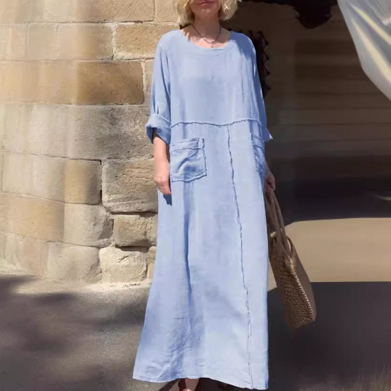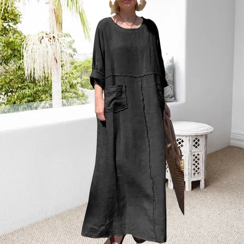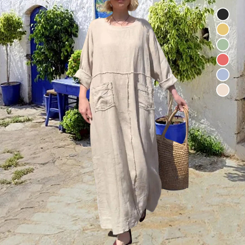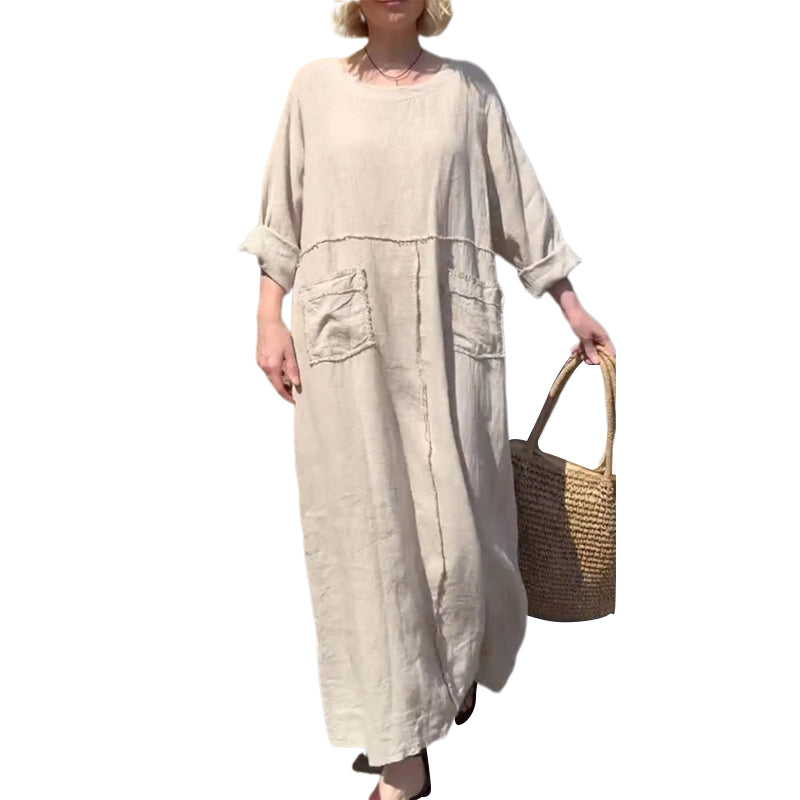 ❉[Modedesign]: Klassisches und modisches langärmliges Maxikleid mit zwei Taschen. Locker und bequem, es kann Ihr elegantes Temperament zeigen.